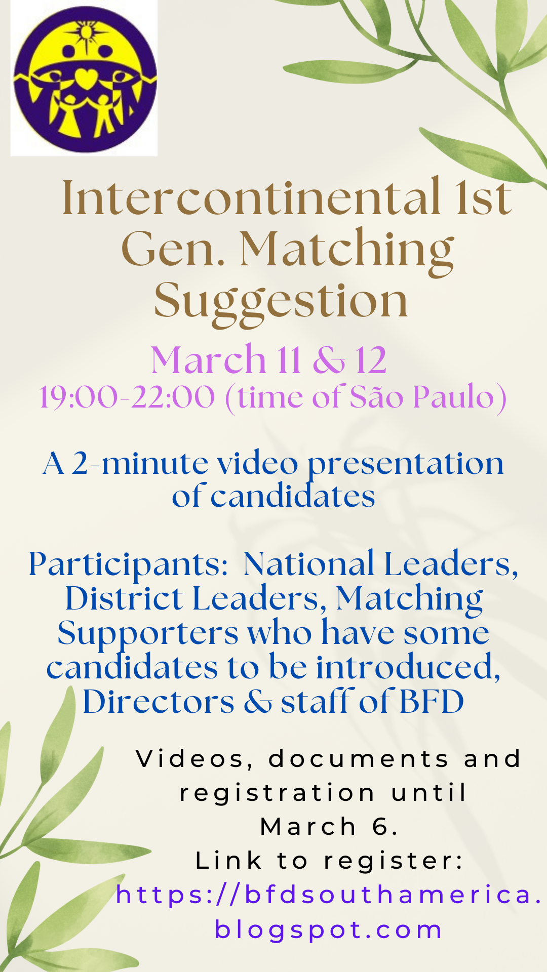 Indicação de Noivado Intercontinental da 1ª Ger / Indicación de Noviado Intercontinental de 1ra Gen / Intercontinental Matching Suggestion for 1st generation candidates