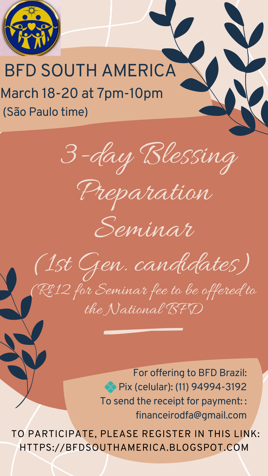 Seminário de Preparação para Bênção - 1ª Ger / Seminario de Preparación para la Bendición - 1ª Gen / Blessing Preparation Seminar - 1st Gen
